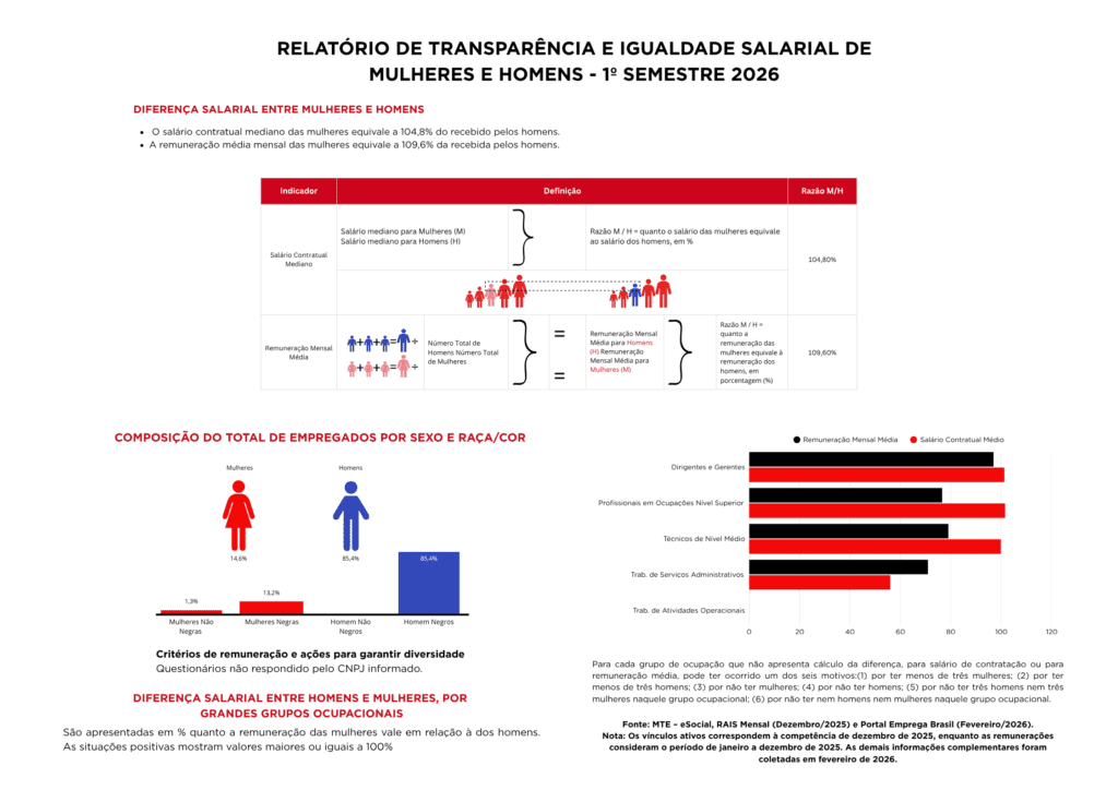 O Ministério do Trabalho e Emprego (MTE) divulgou o Relatório de Transparência e Igualdade Salarial entre Mulheres e Homens – 1º semestre de 2026, trazendo um panorama atualizado sobre a relação de remuneração entre gêneros nas empresas brasileiras. Elaborado com base em dados oficiais do eSocial, RAIS e Portal Emprega Brasil, o relatório tem como […]